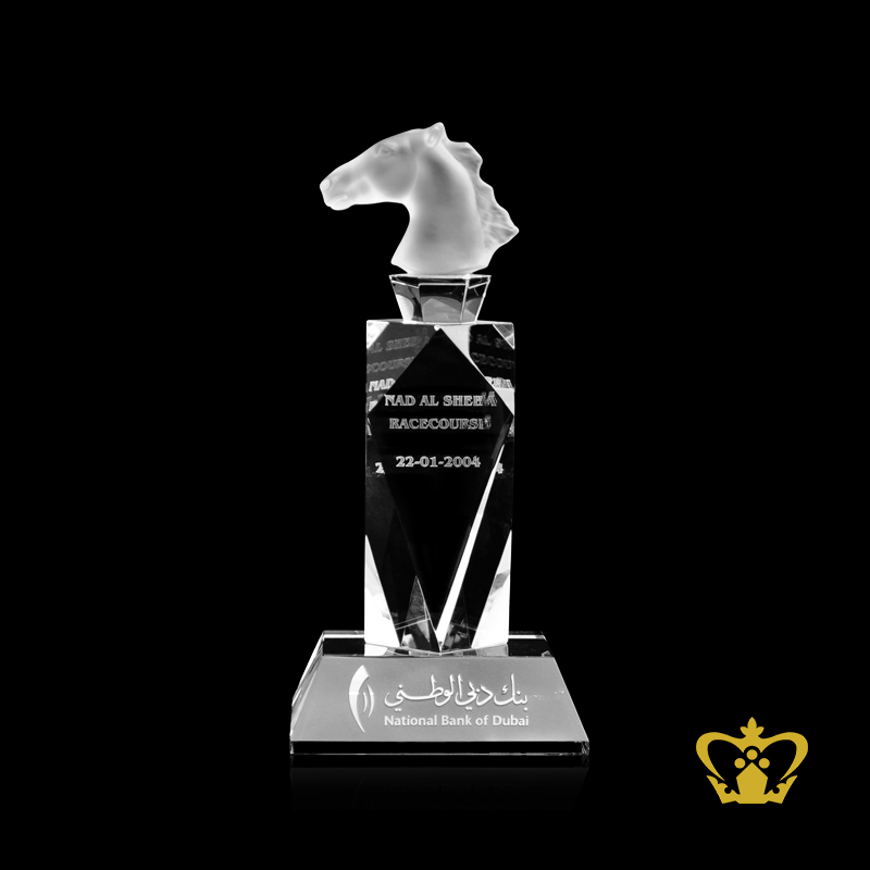 Personalized-crystal-horse-trophy-with-clear-base-customized-logo-text Product Product Product
