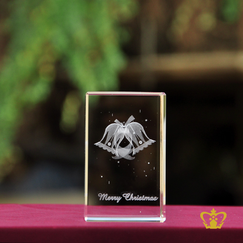 Merry Christmas Bells 3D laser engraved crystal Cube Gift