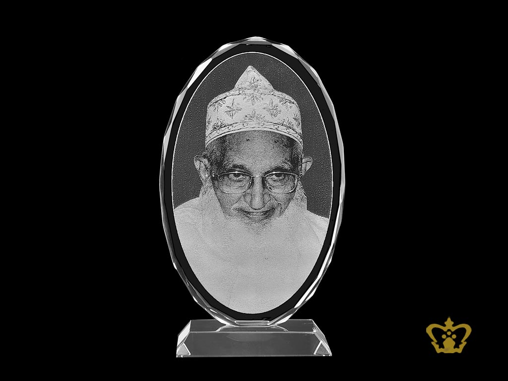 Crystal Gallery represent the craft traditions of the Islamic world with uncompromising quality and exceptional craftsmanship: to bring you a fine selection of unique handcrafted crystal corporate Islamic Gifts. Our Islamic artifacts gift decor collections are increasingly popular locally in Dubai, UAE, GCC and abroad. With a portfolio of high profile clients, our luxury giveaways have added the perfect awe-aspiring touch to many occasions and events. Our brand is widely recognized and endorsed by our clients for its classy Islamic gift collections and excellence of service. We design experiences in the world of luxury corporate gifts. This Modern Islamic Art handcrafted decorative item is the perfect addition to your home decor! Also can makes a great housewarming gift, Eid Gift, Ramadan Gift, Shahadah, gift for someone returning home from Hajj! Photo engraved Plaque Moulana of The Dawoodi Bohras