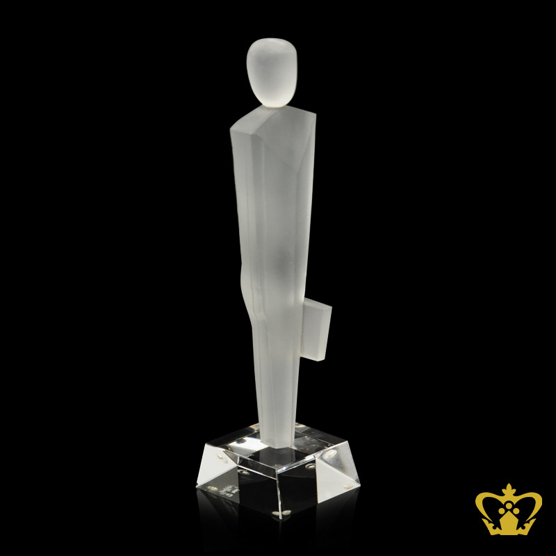 Personalized Crystal Frosted Man Replica stands on Clear Crystal Base Customize Text Engraving Logo