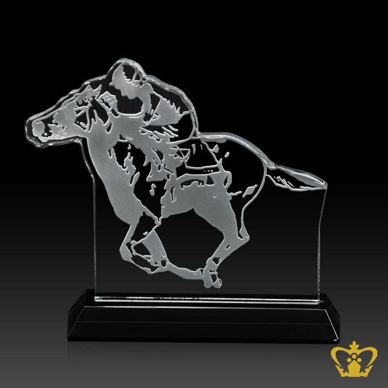 Personalized-Crystal-Horse-Rider-Cutout-Trophy-with-Black-Base-Customized-Logo-Text Product Product Product