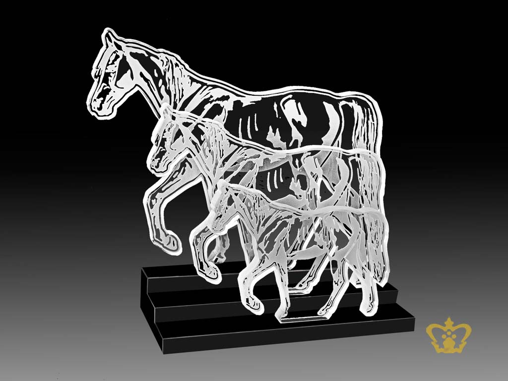Personalized Crystal Three Horse Cutout Trophy With Black Base Customized Logo Text