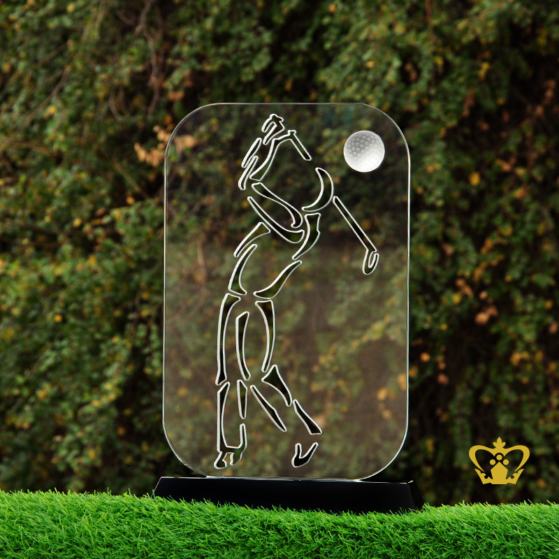Personalized Crystal Golfer Trophy stands on Black Crystal Base Customized Text Engraving Logo