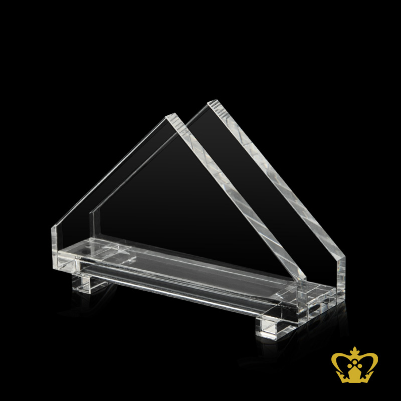 Engraved business card holders and business card cases make great gifts for business people, check out our wide range of business card holders branded, business card holders engraved, business card holder engraved gift and business card holders monogrammed. Showcase your business cards by choosing one of our desk business card holders. Define your own unique image with one of our outstanding personalized desk business card holders. We offer a premium selection of business card holders for the desk ranging from classic to contemporary designs. Make a defining presence for yourself or your business with one of our sophisticated choices in unique desktop business card cases. Steer your office image to the top percentile with a Personalized Desk Business card holder from crystalgallery.com. We will engrave your name, initials or corporate logo in quality laser engraving or color engraving to create a lasting impression for your desk. This personalized crystal business card holder stands for true professionalism. It is a corporate gift that practically ensures more business. There are not many things you can give a professional to show them how much you care about them and their business, but this is definitely one of those perfect gifts that will work well to say both. Get your business card holder customized artwork, we will make sure the designs fit your needs before you pay anything. Order yours online today by click on customize button and upload your logo or image and text, you can also click on enquiry button we will respond as soon as we can.