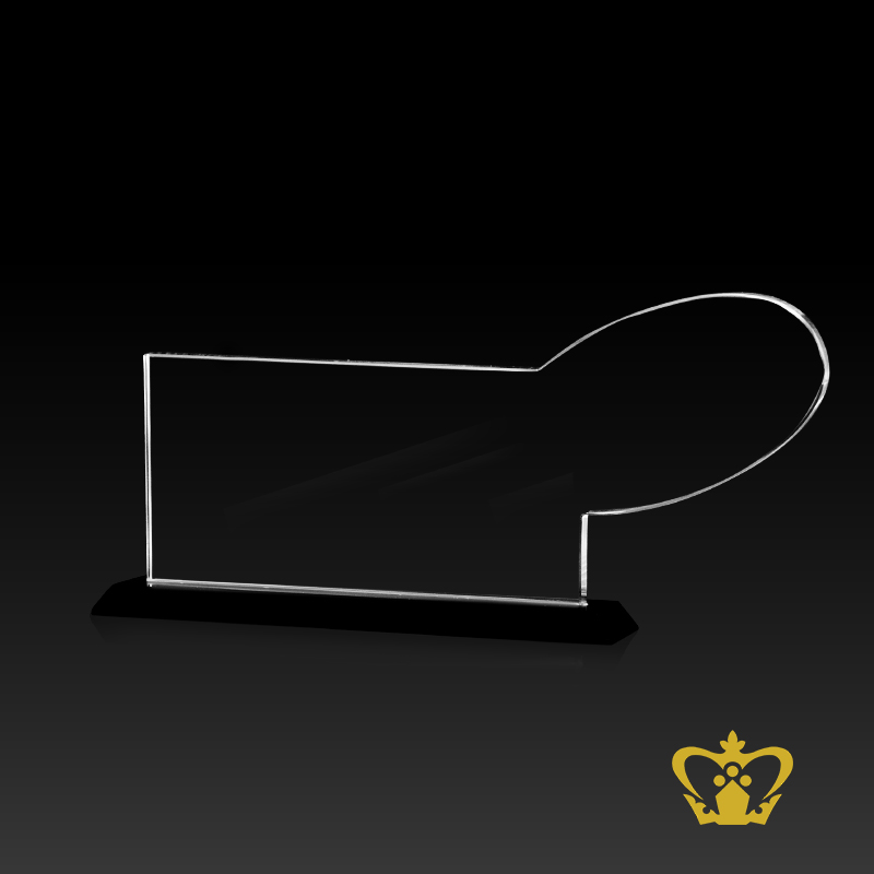 Handcrafted Crystal Rectangular Cutout Trophy Stands On Black Crystal Base Customize Text Engraving