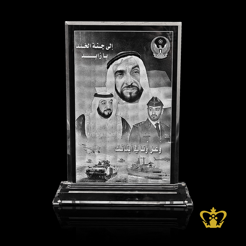Handcrafted Crystal Rectangular Plaque Trophy Stands On Clear Crystal Base Customize Text Engraving