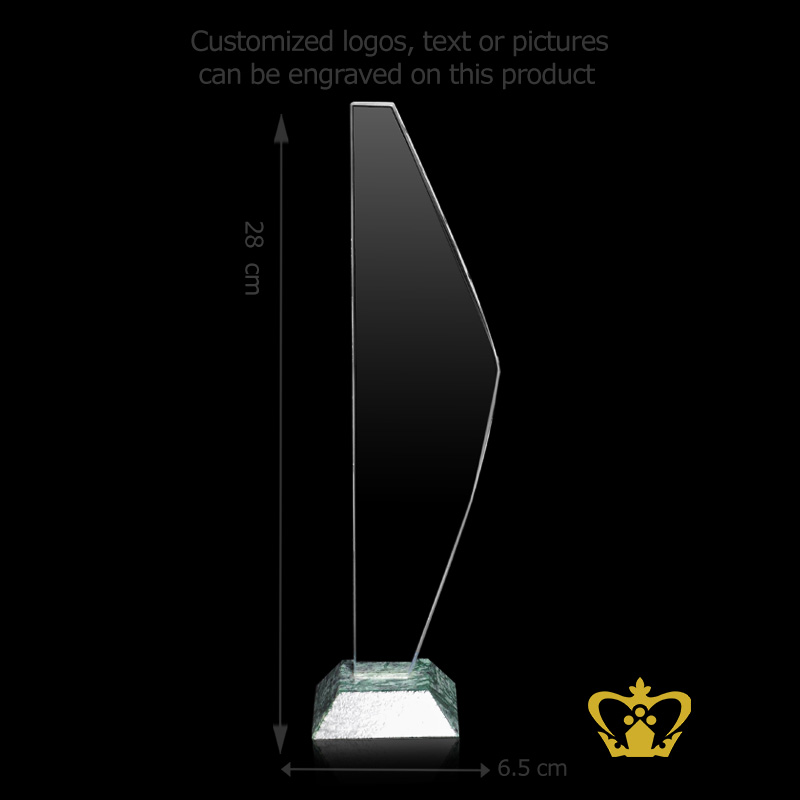 Personalized / Customized content such as logos, text can be engraved / etched on the Base of this product at an additional charge. For honoring an individual achievement, top performers, or the whole team, we have the perfect recognition items to fit your needs. Our selection of custom awards, plaques, cutout, memento, replicas and trophies are perfect for everything from small office celebrations to largescale corporate events. Get your awards and trophies customized artwork, we will make sure the designs fit your needs before you pay anything. Our crystal laser engraved trophies are a lasting symbol of corporate and employee recognition. Our expert design team specializes in creating unique, custom award trophies for businesses that will fit any budget. Crystal Gallery’s custom awards are memorable tokens of your appreciation. Our expert in-house factory and engravers specialize in custom crystal-cut logos, custom printed acrylic awards for full-color designs, and unique etching with 3D crystal laser awards.