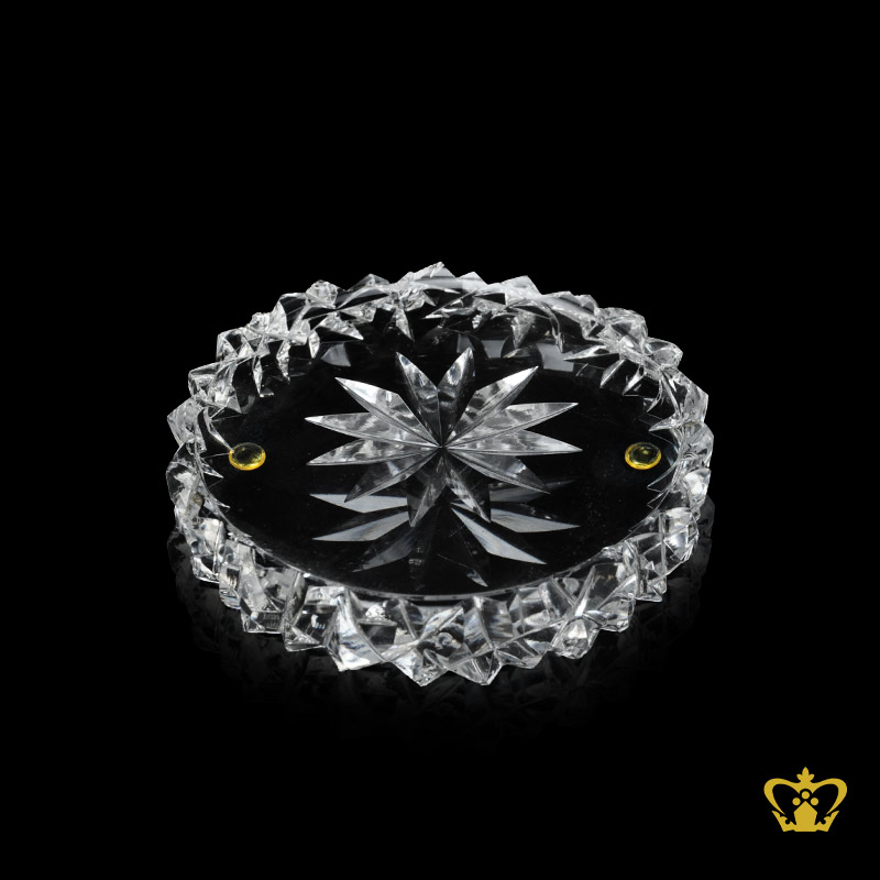 Personalized crystal paper weight for desktop handcrafted with elegant intense star pattern cuts