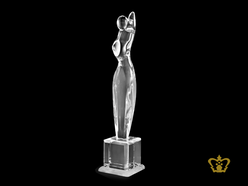 Manufactured-Crystal-Trophy-Molded-in-a-Shape-of-Lady-stands-on-a-Clear-Crystal-Base Product Product Product Product Product