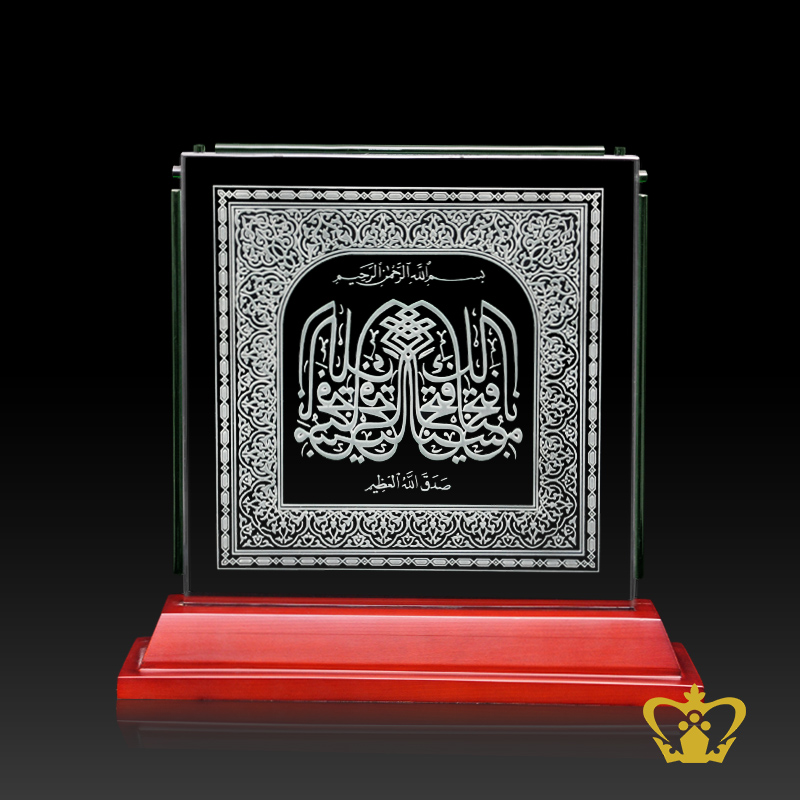 Inna-Fathana-Arabic-word-calligraphy-engraved-on-crystal-plaque-with-wooden-base Product Product Product Product