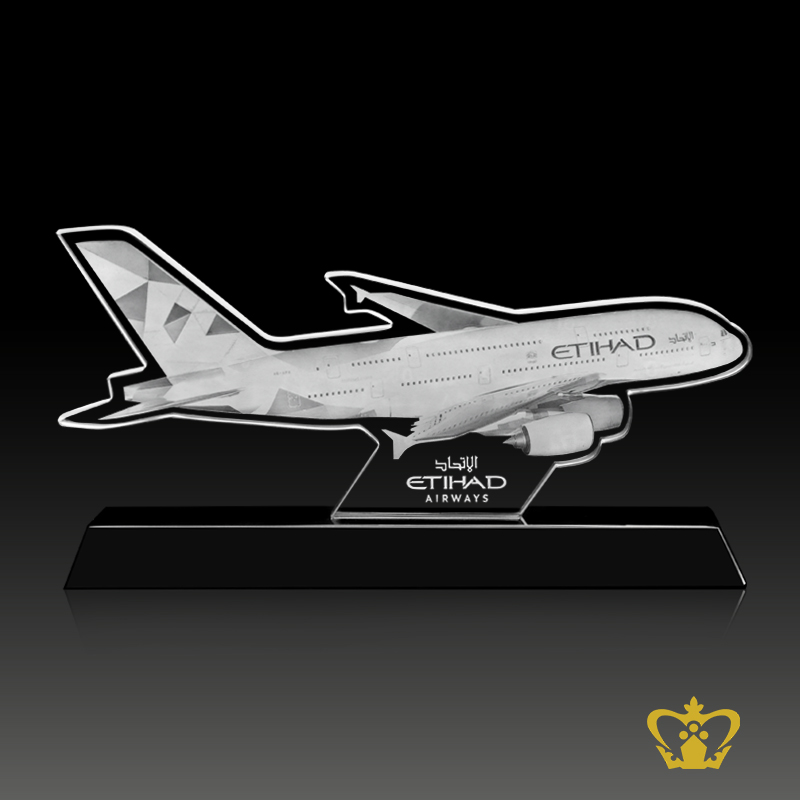 Personalized-Crystal-Cutout-of-Etihad-Aeroplane-Customized-Text-Engraving-Logo-Base-UAE-Famous-Gifts Product Product Product