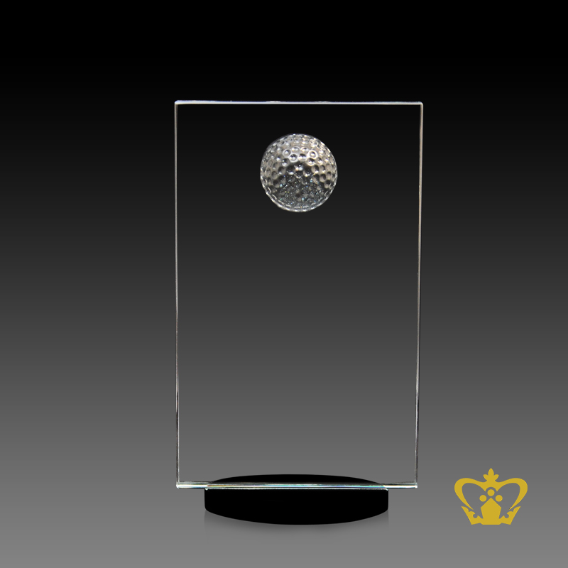 Customized-Crystal-Rectangular-Plaque-Cutout-with-Golf-Ball-Memento-Logo-Engrave-With-Black-Crystal-Base Product Product Product