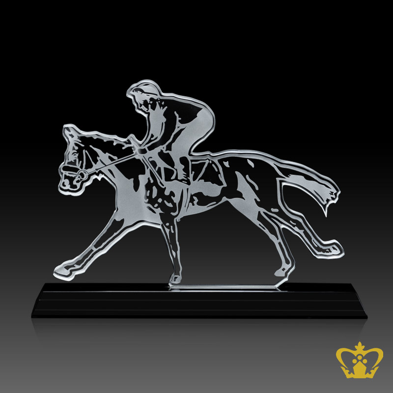 Personalized-Crystal-Horse-Rider-Cutout-Trophy-With-Black-Base-Customized-Logo-Text Product Product Product Product