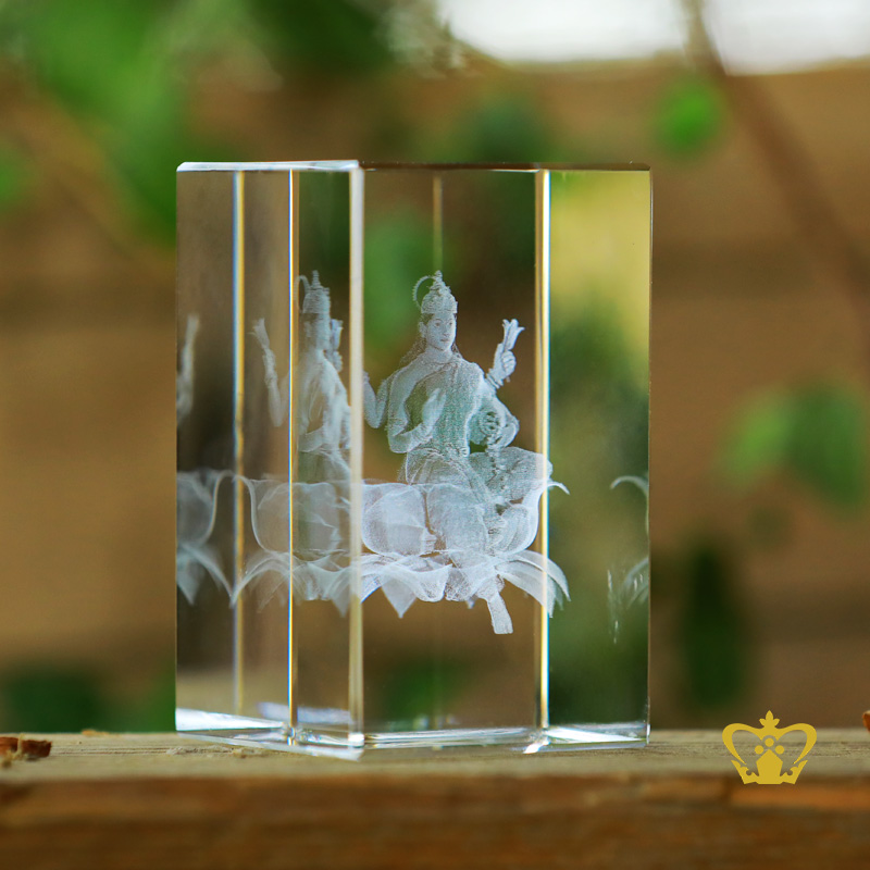 Indian Festival Hindu God Religious Holy Gift Laxmi Goddess 3D Laser Engraved Crystal Cube Customized Personalized Logo Text