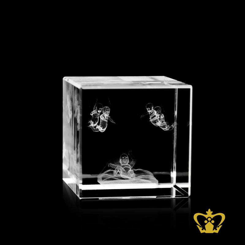 You can personalize this crystal cube or rectangular crystal block by engrave your own photo, logo, text, design or any ideas. Click on customize button and upload your image or text and buy online, you can also click on enquiry button we will respond as soon as we can. To produce a 3D crystal, firstly our designers transform any of your ordinary photographs into amazingly 3D images. Then it imprinted or engraved in glass cube using our precision laser technology in crystal cube. 3D crystal cube or blocks are often used for 3D or 2D crystal portraits and given as gifts for wedding, birthdays, Valentine's Day, mother's day, father's day, graduation, convocation , remembrance, memorial or anniversary gift. There are also great corporate or business gifts for recognition awards, promotional paperweights and event mementos. Corporate logos laser engraved inside of the crystal make elegant client and employee gifts. These laser crystals accommodate 3D layered designs where text and image can be engraved at different depths in the crystal. You can add an optional light base and the interaction of the white LED light with the engraving creates bright and sparkling 3D keepsake.