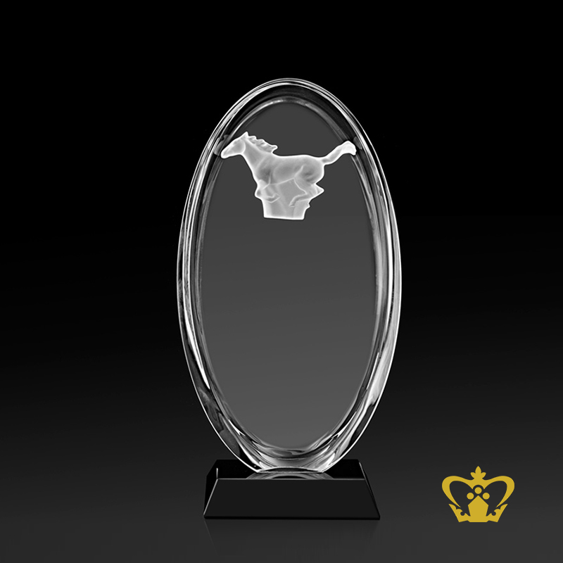Personalized-Crystal-Oval-Horse-Trophy-With-Black-Base-Customized-Logo-Text Product Product