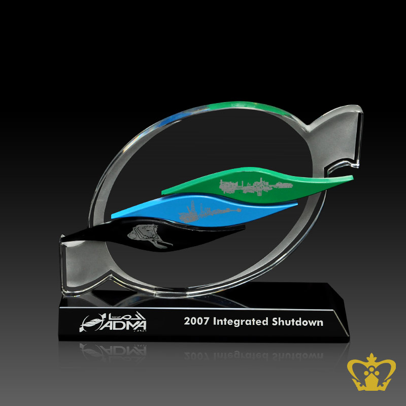 Personalized crystal cutout trophy with black base Customized text engraving logo