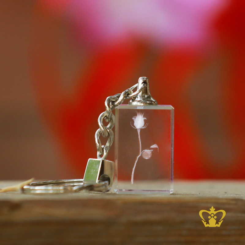 Crystal-small-rectangle-shape-key-chain-3D-rose-flower-laser-engraved-printed-customize-personalize-etched-laser-Birthday-graduation-friends-family-gift-Valentines-Day Product Product Product Product Product Product