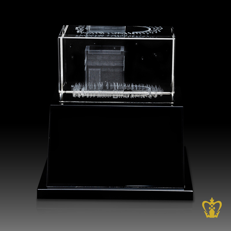 Religious-Islamic-Occasions-Gift-Holy-Kaaba-3D-Laser-Engraved-in-Crystal-Cube-with-Black-Base-Customized-Logo-Text-Ramadan-Eid-Souvenir- Product Product