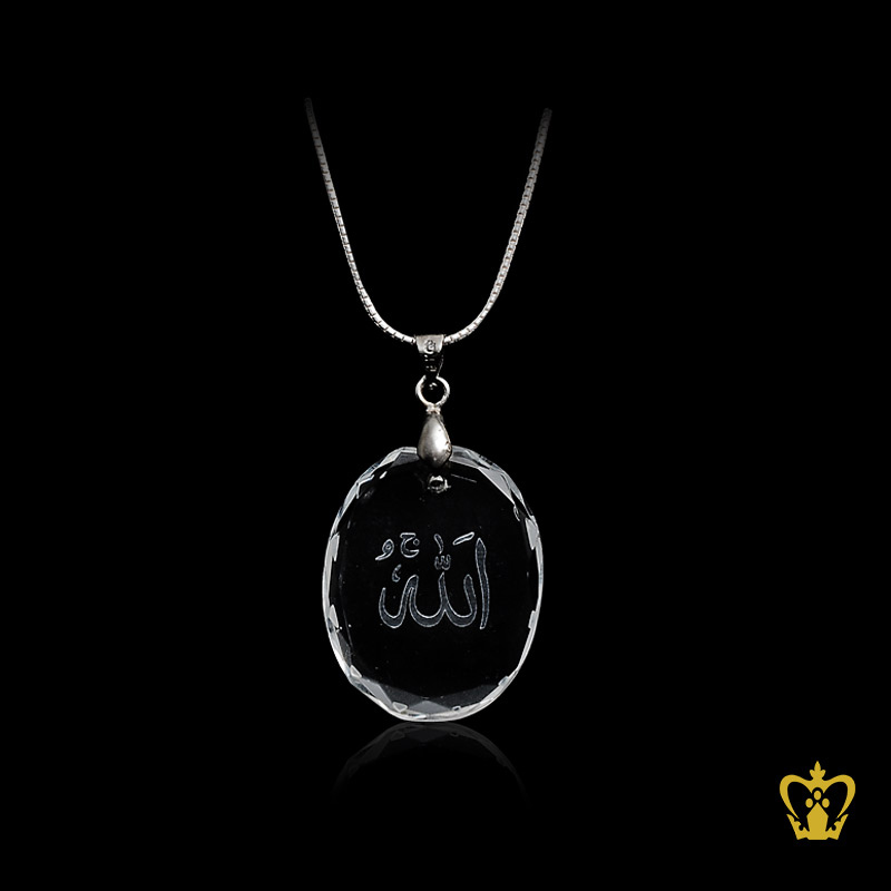 Islamic-Occasions-Religious-Souvenir-Crystal-Oval-Pendant-diamond-cut-Arabic-Word-Calligraphy-Allah-Engraved-Ramadan-Eid-Gift Product Product