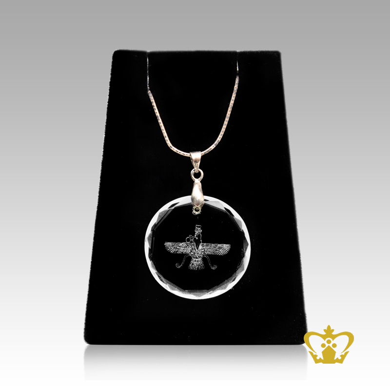 Crystal-round-pendent-diamond-cut-perfect-gift-for-her-engraved-Faravahar-Zoroastrianism-Mazdayasna-religious-souvenir-gift Product Product