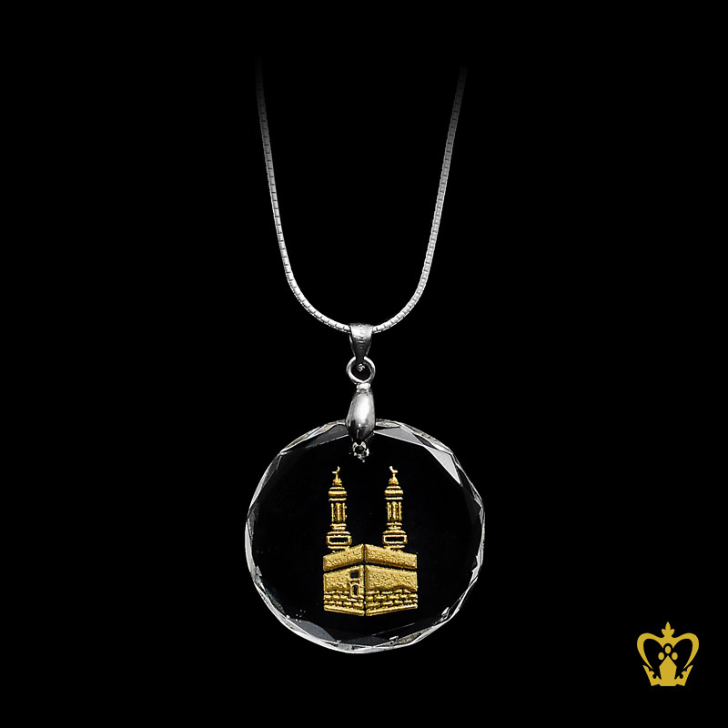 Crystal Round Pendant Diamond Cut Holy Kaaba Engraved with Gold Color Islamic Occasions Gift Religious Eid Ramadan Souvenir