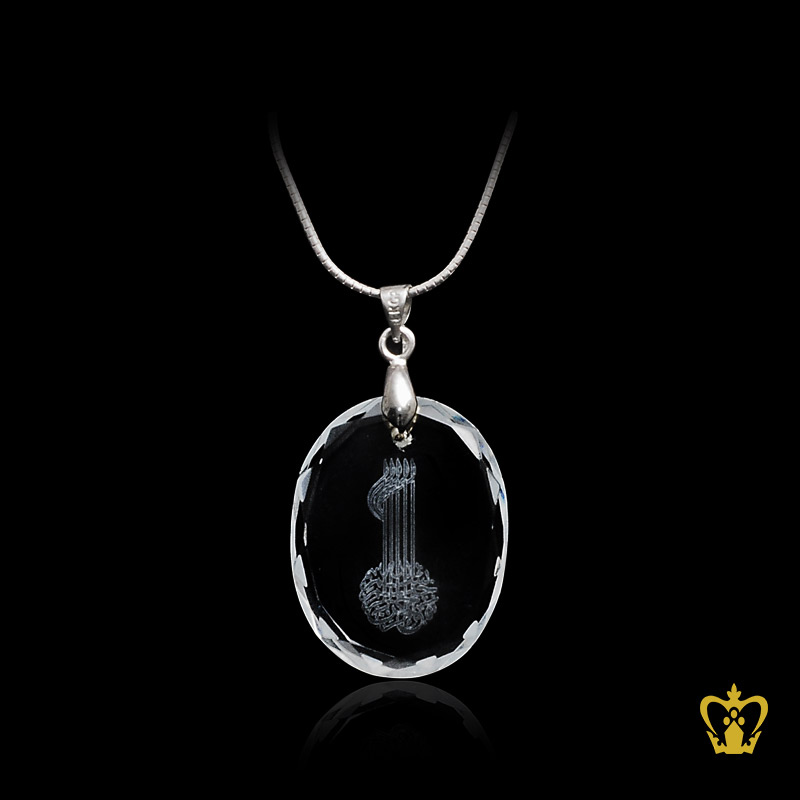 Crystal oval pendant diamond cut Arabic word calligraphy Bismillah ir Rahman ir Rahim 2D laser engraved Islamic occasions religious souvenir Ramadan Eid gift
