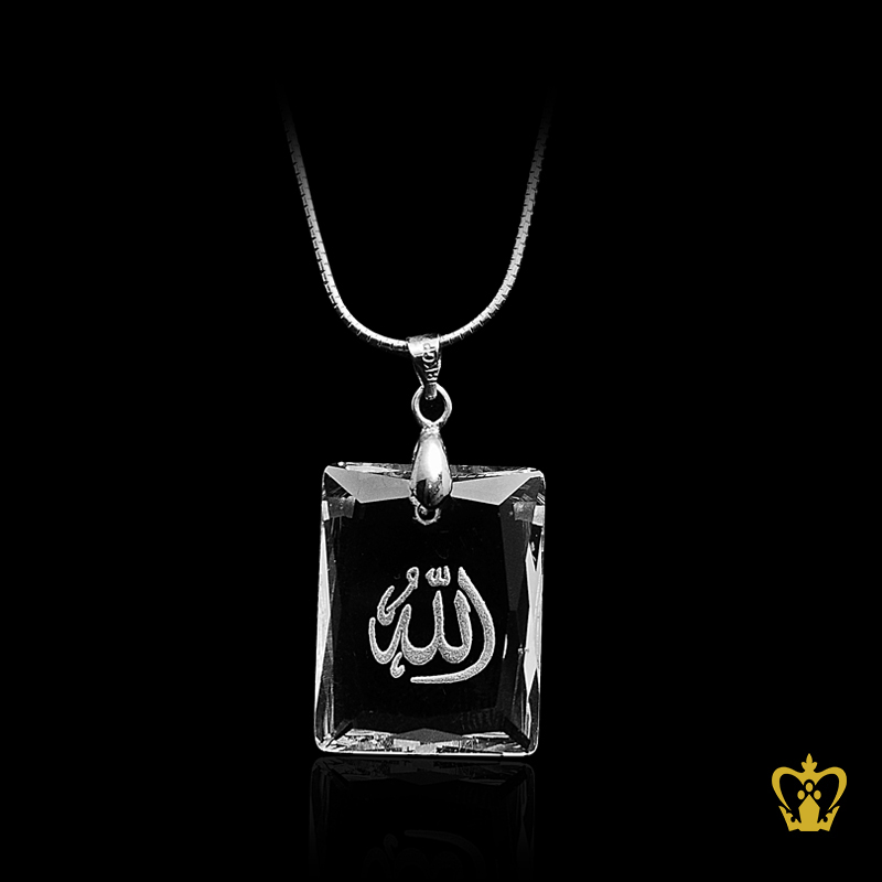 Rectangular pendant with diamond cut Arabic Word Calligraphy Allah normal engraving Islamic occasions religious souvenir Ramadan Eid gift