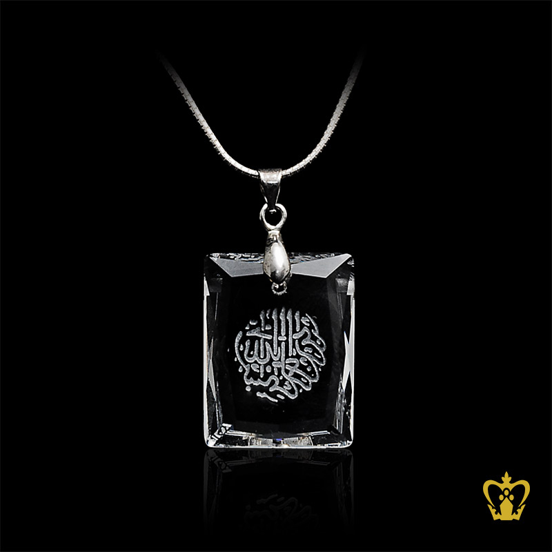 Rectangular pendant with diamond cut Arabic Word Calligraphy Bismillah ir Rahman ir Rahim normal engraving Islamic Occasions Religious Souvenir Ramadan Eid Gift