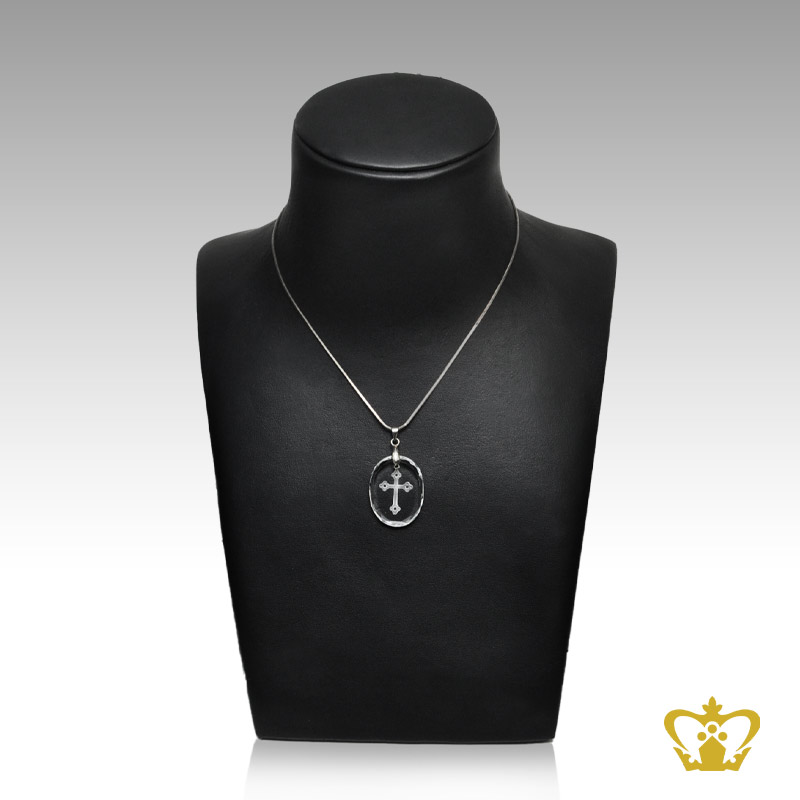 Oval-shape-with-diamond-cut-crystal-pendent-engraved-cross-Christian-religious-gift Product Product Product Product
