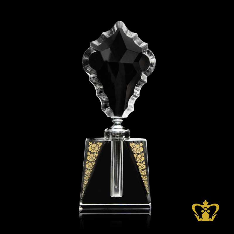 Swanky crystal perfume bottle with golden handcrafted designer pattern and silver collar lovely gift souvenir