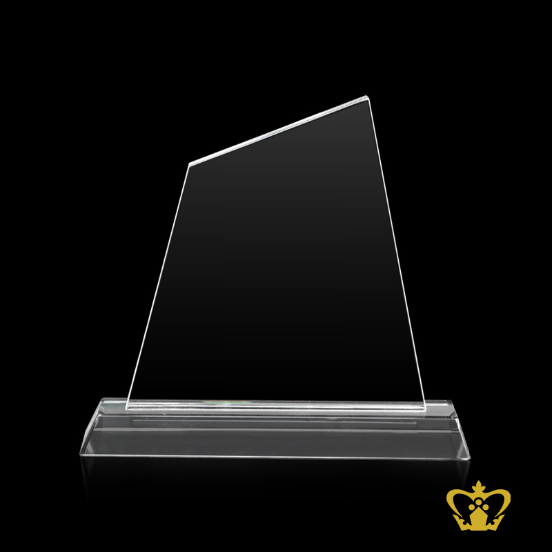 Handcrafted optic crystal trophy stands on clear base customized text logo engraving
