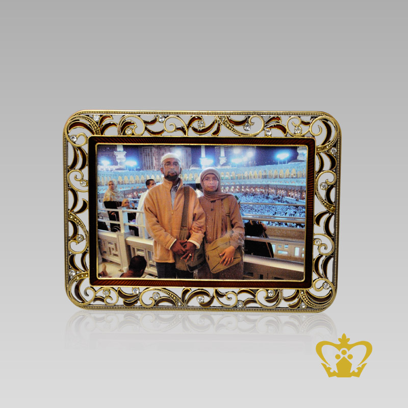 Holy kaaba and two person color printed decorative rectangular photo frame