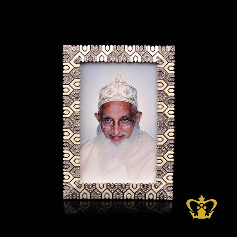 Crystal Gallery represent the craft traditions of the Islamic world with uncompromising quality and exceptional craftsmanship: to bring you a fine selection of unique handcrafted crystal corporate Islamic Gifts. Our Islamic artifacts gift decor collections are increasingly popular locally in Dubai, UAE, GCC and abroad. With a portfolio of high profile clients, our luxury giveaways have added the perfect awe-aspiring touch to many occasions and events. Our brand is widely recognized and endorsed by our clients for its classy Islamic gift collections and excellence of service. We design experiences in the world of luxury corporate gifts. This Modern Islamic Art handcrafted decorative item is the perfect addition to your home decor! Also can makes a great housewarming gift, Eid Gift, Ramadan Gift, Shahadah, gift for someone returning home from Hajj! Photo frame Moulana of The Dawoodi Bohras