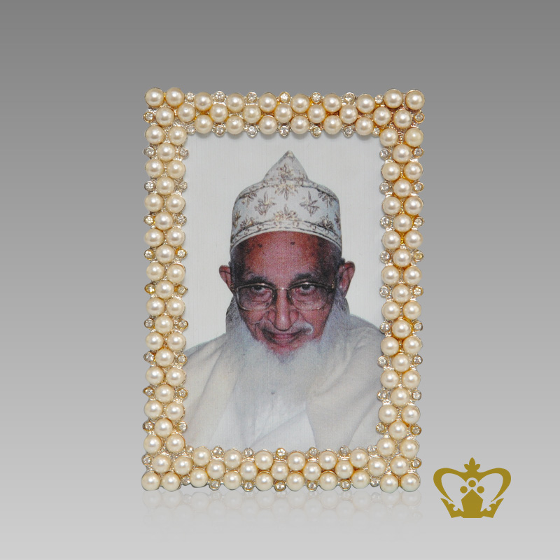 Lovely photo frame of Moullana Mohammed Burhanuddin decorated with crystal diamond pearl