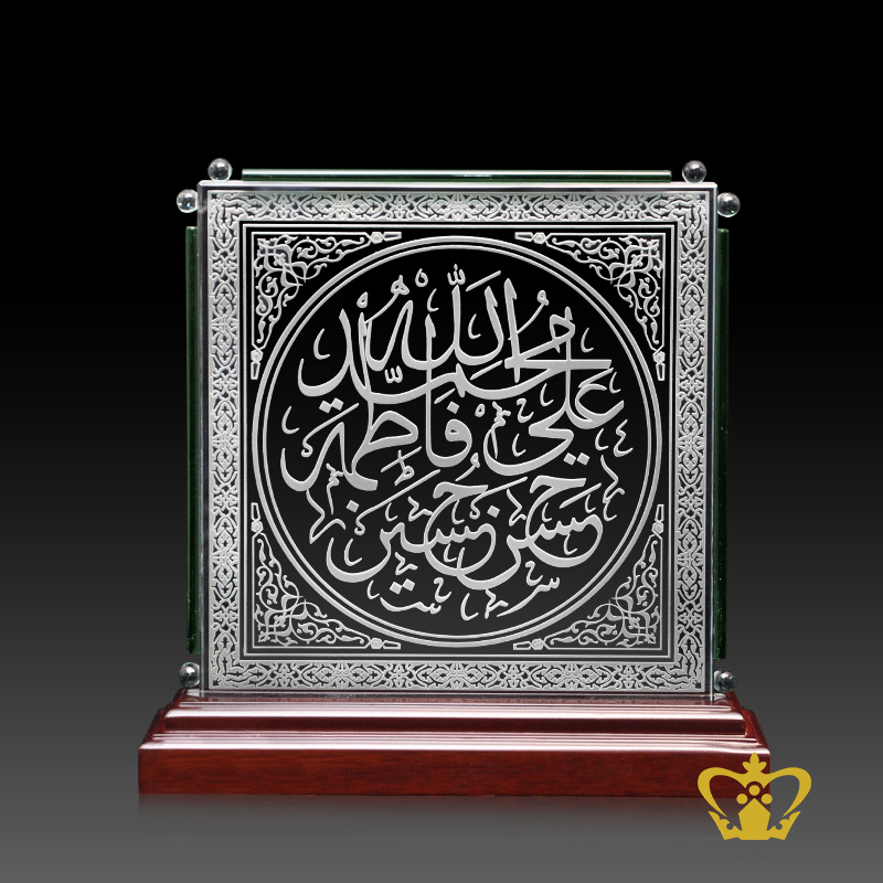 Panjtan-Ahl-Al-kisa-surface-engraved-on-crystal-plaque-with-wooden-base Product Product Product Product