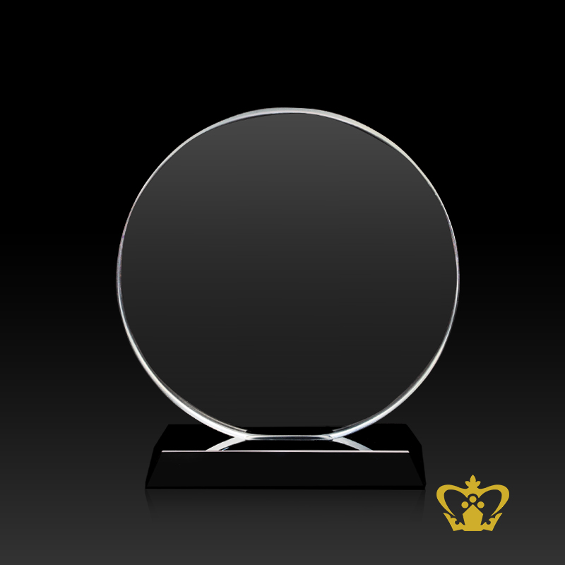 Handcrafted-clear-circle-trophy-with-black-base-customized-logo-text-engraving Product Product Product Product