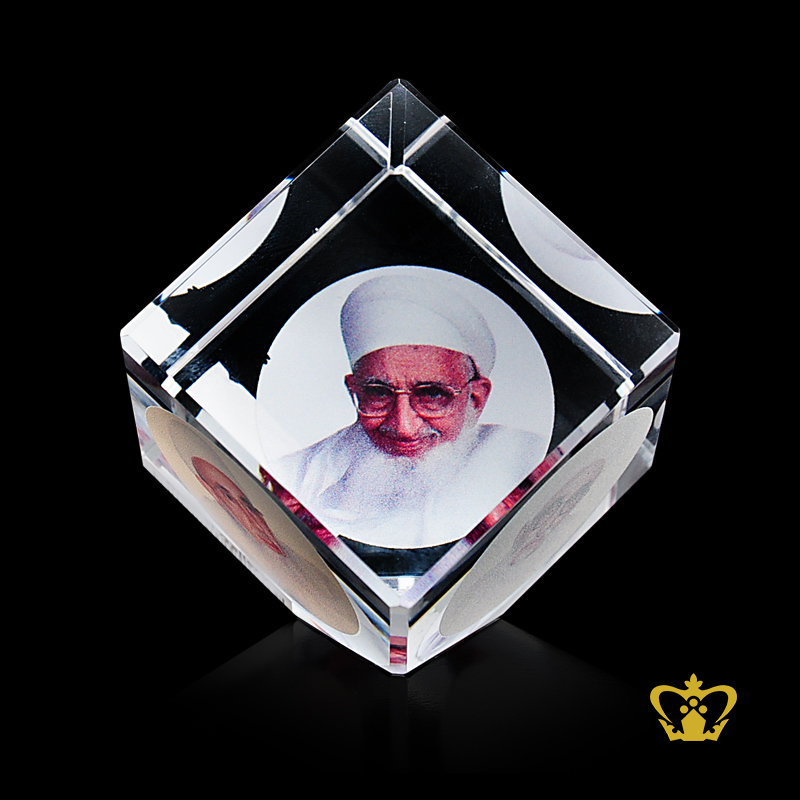 Color printed on crystal cube Burhanuddin Moula religious souvenir gift Bohra community