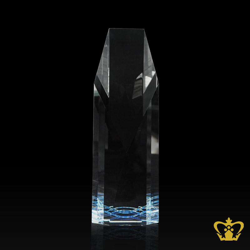 Crystal trophy Facet cuts with wave pattern customized logo text