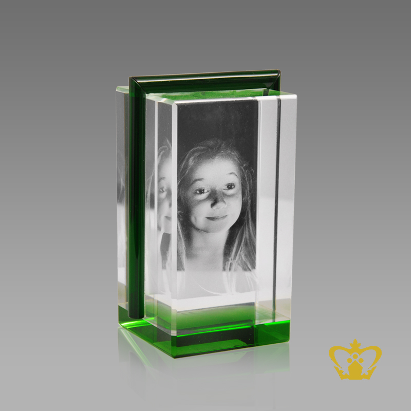 You can personalize this crystal cube or rectangular crystal block by engrave your own photo, logo, text, design or any ideas. Click on customize button and upload your image or text and buy online, you can also click on enquiry button we will respond as soon as we can. To produce a 3D crystal, firstly our designers transform any of your ordinary photographs into amazingly 3D images. Then it imprinted or engraved in glass cube using our precision laser technology in crystal cube. 3D crystal cube or blocks are often used for 3D or 2D crystal portraits and given as gifts for wedding, birthdays, Valentine's Day, mother's day, father's day, graduation, convocation , remembrance, memorial or anniversary gift. There are also great corporate or business gifts for recognition awards, promotional paperweights and event mementos. Corporate logos laser engraved inside of the crystal make elegant client and employee gifts. These laser crystals accommodate 3D layered designs where text and image can be engraved at different depths in the crystal. You can add an optional light base and the interaction of the white LED light with the engraving creates bright and sparkling 3D keepsake.