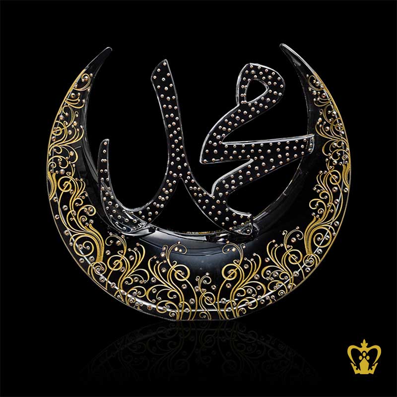 Handcrafted-Moon-Cutout-With-Muhammad-Golden-Arabic-Word-Calligraphy-Crystal-Diamonds-Decorative-Islamic-Religious-Ramadan-Eid-Gifts Product Product
