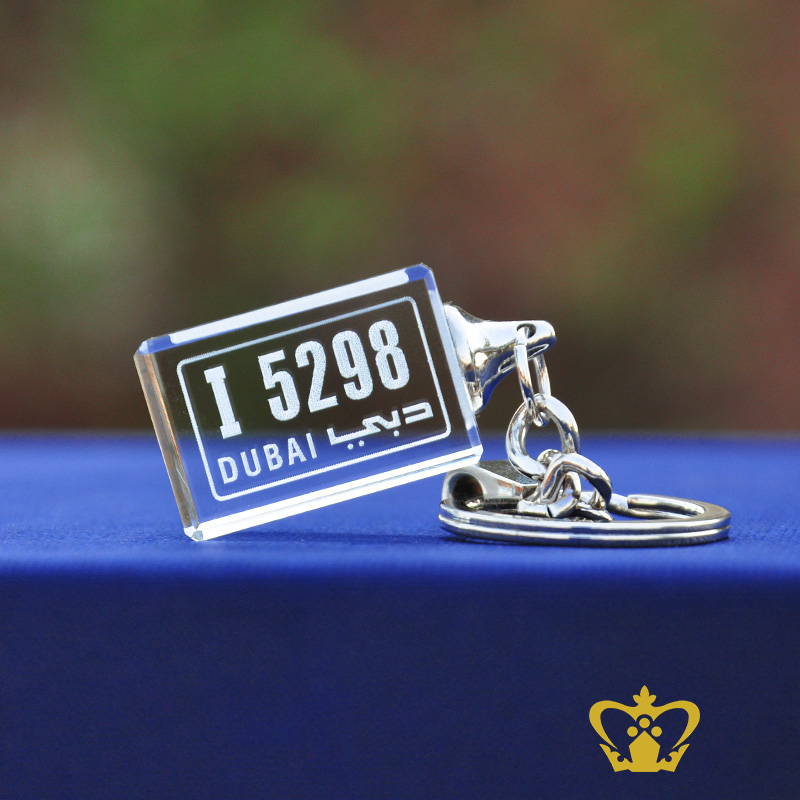 Crystal Cube Key Chain 2D Laser engraved with Vehcile Number plate Personalized Gift For Friends Family