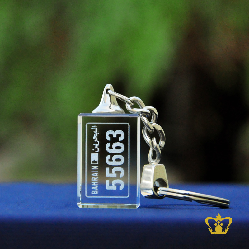 Crystal cube key chain 2D laser engraved with Vehicle number plate personalized gift for friends family
