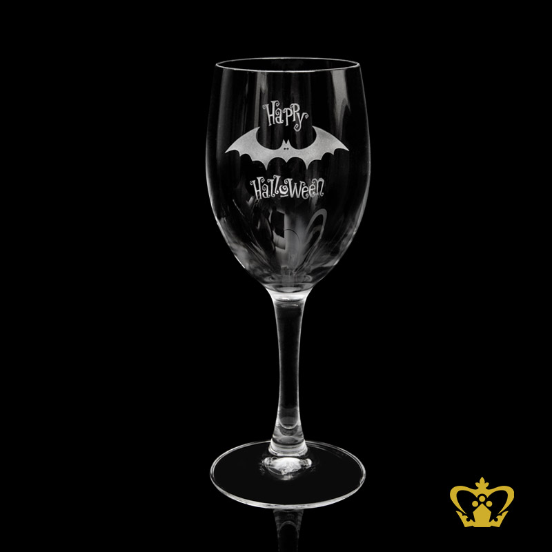 Manufactured artistic red wine glass theme Happy Halloween engraved