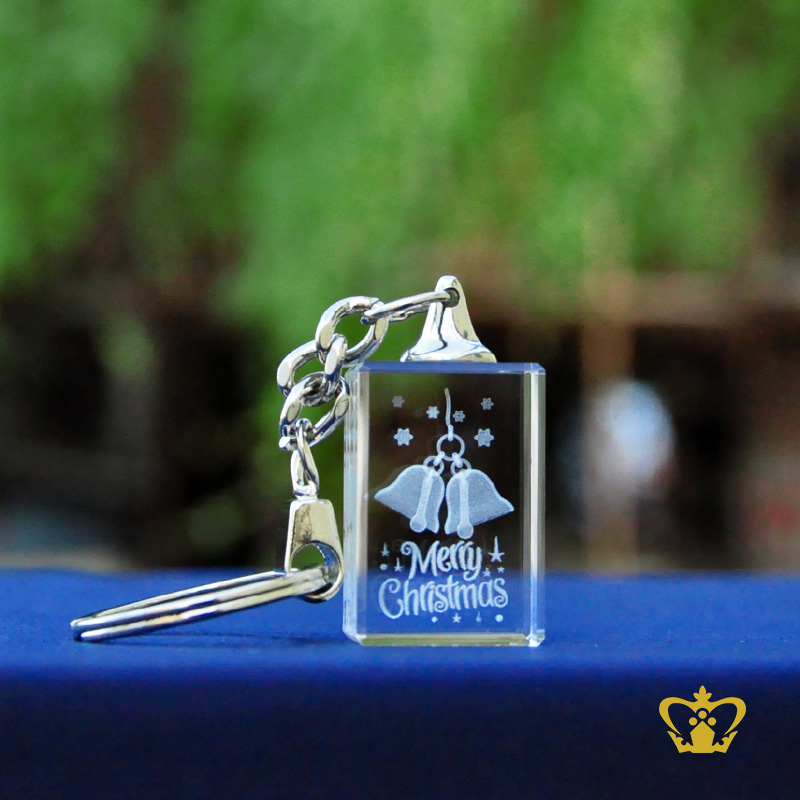 Key-Chain-rectangular-crystal-cube-Laser-Engraved-in-3D-Merry-Christmas-with-bell-for-Christmas-Gift-10X20X30-MM Product Product Product Product Product