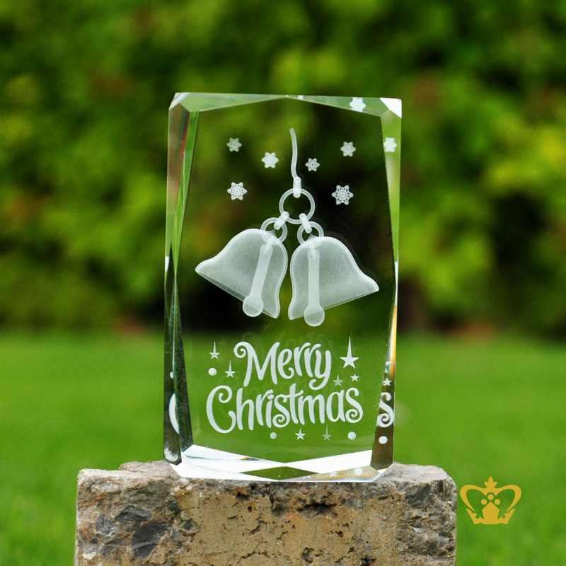 Christmas Bells 3D Crystal Cube laser engraved Merry Christmas with Facet Cuts Christmas Gift 60X100 MM