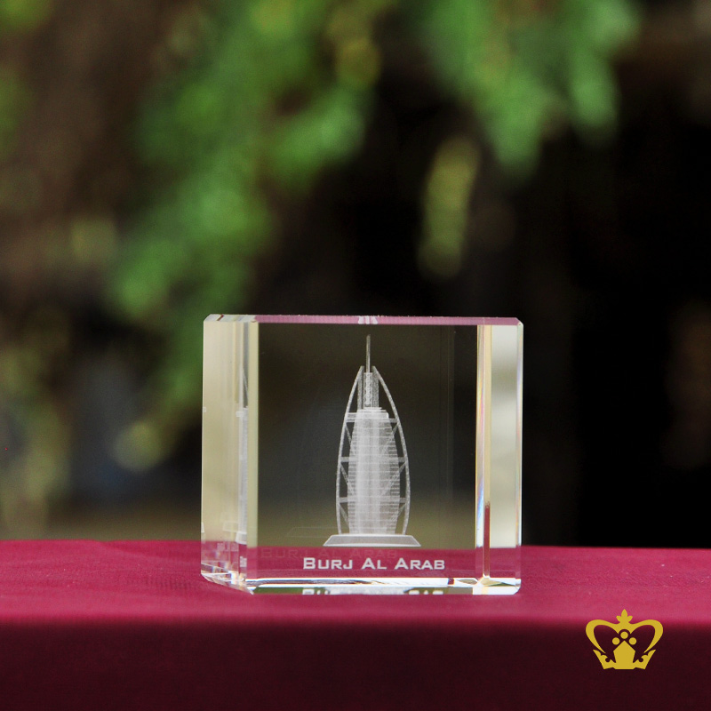 Crystal Cube Crystal Laser Engraving Burj Al Arab UAE Souvenirs 3D Laser Engraved Crystal