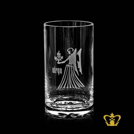 Manufactured-Mesmerizing-Crystal-Tall-Glass-Engraved-with-Virgo-Zodiac-Sign-Custom-Text-Engraving Product Product Product Product