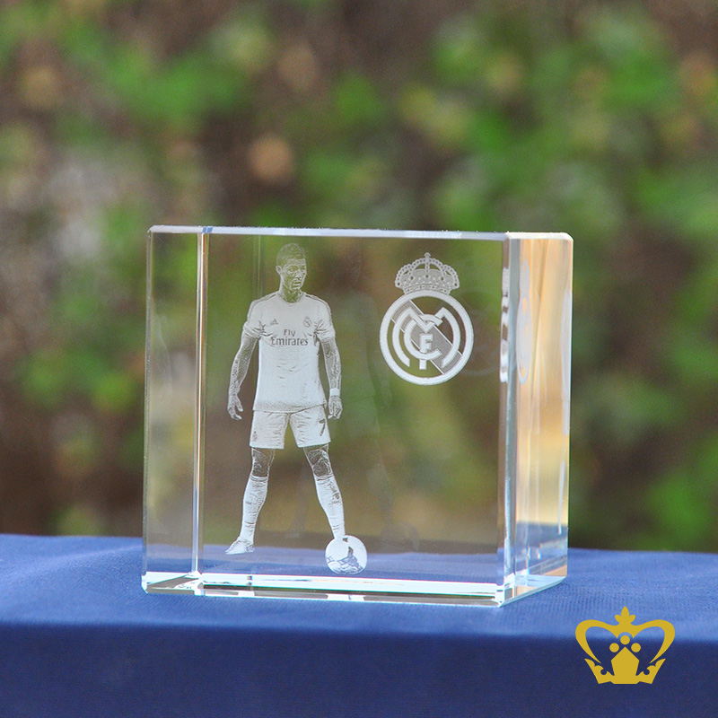 Cristiano Ronaldo a Portuguese professional footballer 3D laser engraved crystal cube.