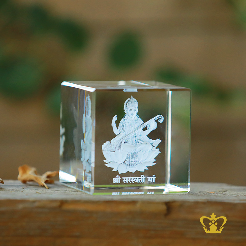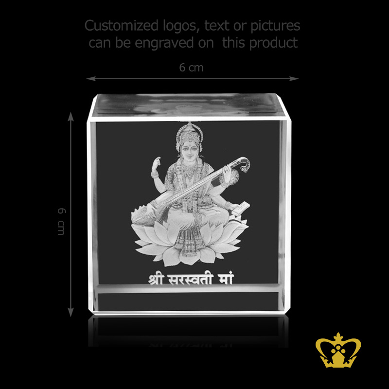 Saraswati-Goddess-3D-Laser-Engraved-Crystal-Cube-Indian-Festival-Hindu-God-Religious-Holy-Gift-Customized-Personalized-Logo-Text- Product Product Product Product Product Product
